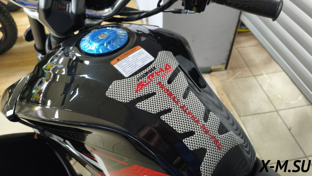Рама мотоцикла PROMAX ALPHA RS-PRO сделана на базе новейше модели мопеды HONDA – самая надежнейшая рама c увеличенной допустимой нагрузкой в 250кг! Рама выполнена из CR-MO (хромолибден) стали, покрыта раптором! Максимальный запас прочности и защиты от коррозии! Держит раму на себе подвеска перевернутого типа спереди и моноамортизатор сзади от KKE, с возможностью тончайшей настройки для ваших задач и целей! В таком сочетании люфты подвески отсутствуют – при резком страгивании с места мотоцикл не рыщет, стоит ровно, уверенно!