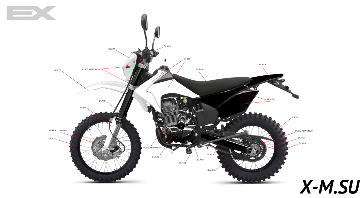 EX-MOTO – это продукт, разработанный командой профессиональных мотоциклистов, участвующих в соревнованиях по всему миру! Каждая мотоцикл идеально сочетает мощность и вес в своем классе. EX-MOTO работает с признанными производителями комплектующих, такими как Zongsheng, NIBBI Racing, KKE, ANJIE, CNC и Unison, гарантируя 100% качество своей продукции! Убедитесь в этом сами!